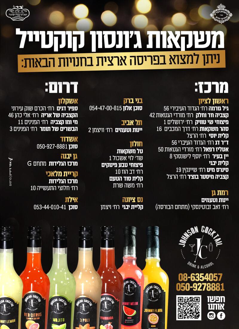 על ידי יונתן אזולאי המכונה ,ג’ונסון מתוך נסיון ואהבה למשקאות קוקטליים בוטיק הנעשה עבור החברים ומשם התחיל הסיפור המשקאות התגלגלו לכל פה ואוזן בארץ עד כדי כך שנהיה ביקוש וכיום אנו מייצרים ומשווקים מבחר של משקאות קוקטיילים במפעל תחת פיקוח של משרד הבריאות והרבנות